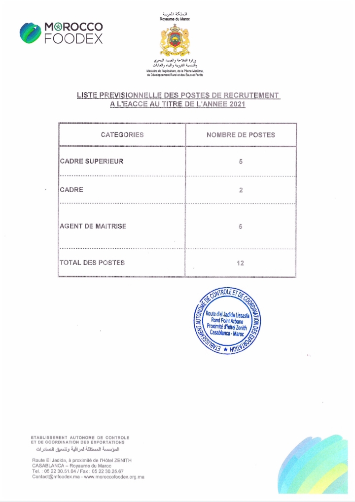 الوكالة المستقلة لمراقبة و تنسيق الصادرات مباريات توظيف 12 منصبا لسنة 2021