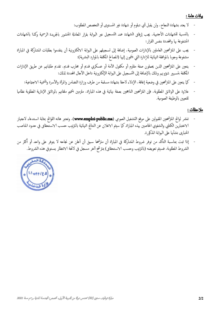وزارة الداخلية: مباراة توظيف 60 مهندس دولة من الدرجة الأولى تخصص الهندسة المدنية آخر أجل هو 6 أكتوبر 2021