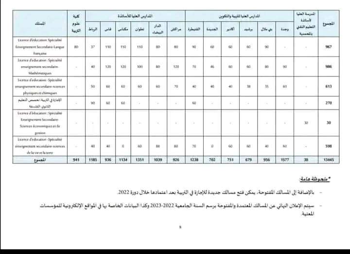 مباراة ولوج السنة الأولى من الإجازة في التربية في كل من كلية علوم التربية بالرباط و المدارس العليا للأساتذة في الرباط و فاس ومكناس و تطوان والدار البيضاء ومراكش ، والمدارس العليا للتربية والتكوين في كل من القنيطرة والجديدة وأكادير وبرشيد وبني ملال ووجدة برسم الموسم الجامعي 2022-2023؛